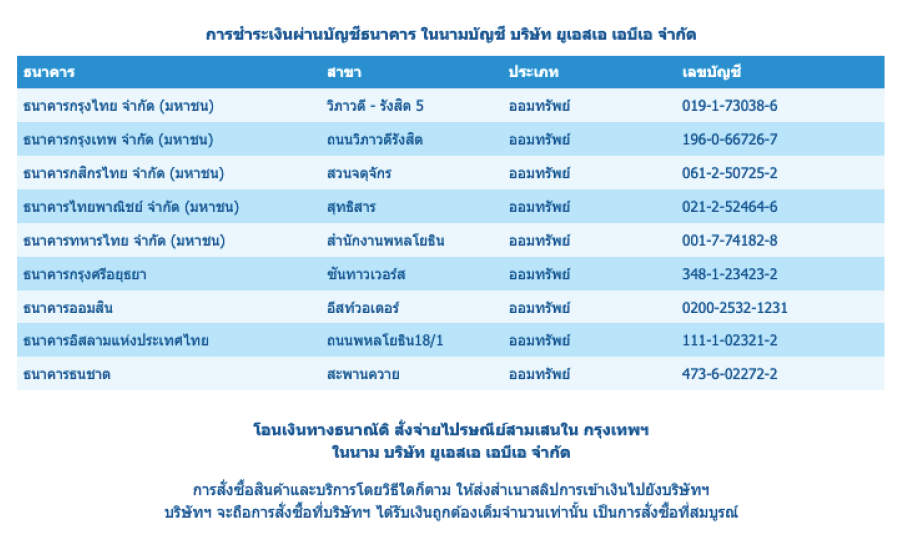 โอนเข้าบัญชี บริษัท ยูเอสเอ เอบีเอ จำกัด